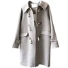 Double gas quality woolen dress female 2021 autumn and winter new Chic Korean version of the thick wedge buckle coat coat 3502