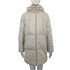 Women Fashion Beige PU Leather Coats Loose Hooded Parkas Women Side Zipper Split Long Cotton Jackets Ladies