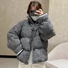 FAKUNTN Women Puffer Coat Stand Collar Plaid Tweed PUffer Jacket Winter Coat Cotton-padded Clothes Warm Outwear