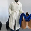 2021 New Winter Loose Fashion Lapel Solid Color Long Sleeve Button Lace Up All Match Chic Mediumn Long Warm Coat For Women
