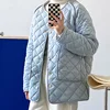 Rhomboid Cotton Padded Jacket Women's 2021 New Autumn Winter Solid Color Singel Button Loose Fashion Small Warm Coat