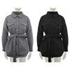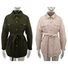 2021 New Front Pockets Parkas Women Fashion Tie Belt Coats Women Elegant Solid Turn Down Collar Cotton Jackets Female Ladies