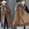 Down Jacket Women Parkas Hooded with Fur Wool Liner Ladies Long Winter Jacket Thick Zipper Pockets Solid Outerwear Coat Women