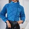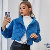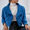 Winter Elegant Office Lady Blue Argyle Pattern Padded Coat Warm Outerwear Casual Short Parkas Chic Tops Women's Down Jacket 2022