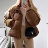 Casual Women Corduroyt Winter Warm Short Outerwear Female Loose Stand Collar Pockets Ovresize Parkas 2022 Padded Down Jacket Coa