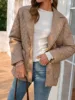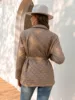 Casual Women Winter Argyle Pattern Parkas with Belt Female 2022 Turn Down Collar Down Jackets Warm Outerwear Qulited Coats Khaki
