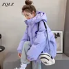 ZQLZ Jacket Women's Winter 2021 New Oversized Parka Purple Hooded Loose Cotton Padded Student Coat Thicken Warm Outerwear Female