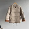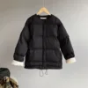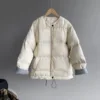 women's winter down cotton jacket Contrast color drawstring thickened long sleeve zipper coat 2021 warm collarless bread clothes