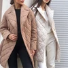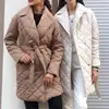 Fashion Lingge Mid-Length Parkas Woman Casual Lapel Lace-Up Women's Coat Winter Warm White Long Sleeve Top Ladies Clothes