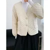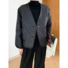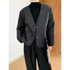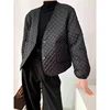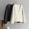 2021 New Winter Plaid Cotton-padded Jacket V-neck Thin Casual Relaxed Slim Korean Parka Coat Female 7515