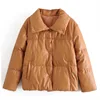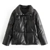 PU Leather Fashion High Street Solid Faxu Leather Coats Women Elegant Winter Thick Cotton Jackets Loose Outerwear