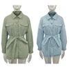 RR Spring Turn Down Collar Parkas Women Fashion Tie Belt Coats Women Elegant Solid Front Pockets Cotton Jackets Female Ladies