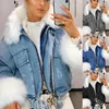 2021 Fashion Denim Jacket Women's Loose Fur Collar Short Coat Temperament Lapel Denim Women Coats and Jackets Winter