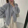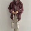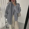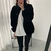 Streetwear Solid Cashmere Coats Women Winter Standard Collar Warm Wool Lamb Fur Overcoats Zipper Office Lady Casual Loose Parkas