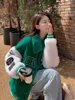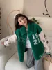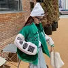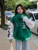 Fashion Oversized Parkas 2022 Early Spring Casual Letter Patchwork Short Baseball Uniform Turn Down Collar Jackets Green Coats