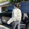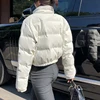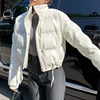 NEW 2022 Spring Woman Jacket White Short Coat Stand Collar Cotton Winter Clothing Fashion Warm Female Padded Drawstring Parkas