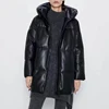 Winter Loose Solid Parkas Women Fashion Hooded Long Coats Women Elegant PU Leather Cotton Jackets Female Ladies