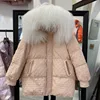 2021 Winter Wool Big Fur Collar Net Red Women's Down Jacket Fashion All-match Hooded Short Loose Thick White Duck Down Jacket
