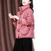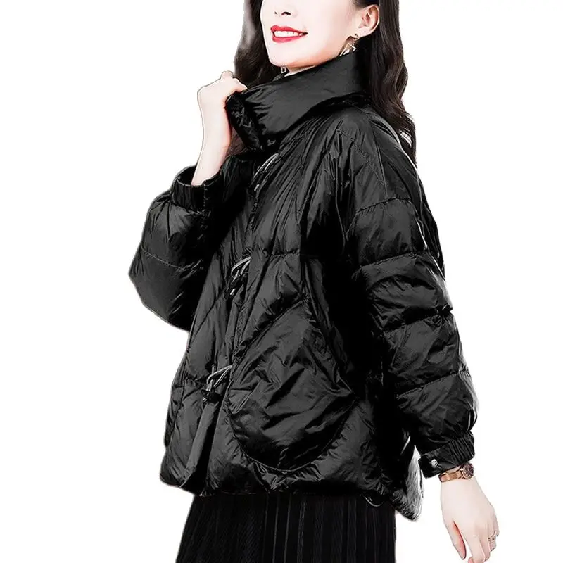 Women Korean Short Down Cotton Jacket Female Winter New Fashion Horn Buckle Loose Retro Stand-up Collar Fashion Thick Coat A868