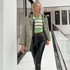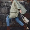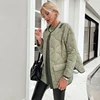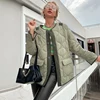 FAKUNTN Winter green short parka women Casual long sleeves collarless coats female Thick pocket warm jacket female tops