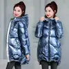 2021 New Winter Jacket Parkas Women Glossy Down Cotton Jacket Hooded Parka Warm Female Cotton Padded Jacket Casual Outwear P985