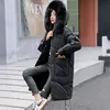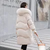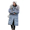 2022New Women Winter Coat Elegant Loose White Duck Down Jacket High Quality Fur Hooded Long Overcoat Thickened Warm Down