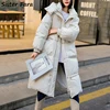 Sister Fara New White Duck Down Down Jacket Winter Women Mid-Length Parka Jackets Female Thick Slim Padded Hooded Long Down Coat