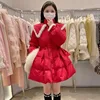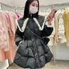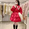 Christmas New Year Red Parka Padded Coat Bubble Jacket 2022 Winter jacket women Diamonds Beaded Tunic Long Dress Fur Collar Coat