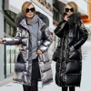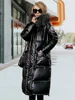 2022 new Glossy European and American-Style Mid-Length Thickened Cotton Padded Coat Overcoat Coat Winter coat women
