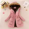 2021 Thick Parkas Faux Fur Coats Women Long Sleeve Hooded Neck Zipper Button Plus Size Casual Female Outwear Warm Down Jacket