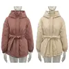 Casual Solid Tie Belt Parkas Women Fashion Thick Short Coats Women Elegant Hooded Loose Cotton Jackets Female Ladies