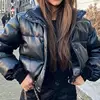 Winter Thick Warm Short Parkas Women Fashion Black PU Leather Coats Ladies Elegant Zipper Cotton Jackets Female Ouwear