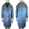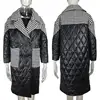 Turn Down 2021 Collar Parkas Women Fashion Patchwork Houndstooth Coats Women Elegant Loose Long Cotton Jacket Female Ladies
