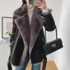 Xfh Women's double-sided Coat New Style With Fur Lamb Hair European And American Style Plus Velvet Plus Velvet double-sided Coat