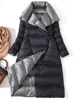 2022Women Double Sided Down Long Jacket Winter Turtleneck White Duck Down Coat Double Breasted Warm Parkas Snow Outwear