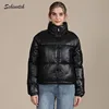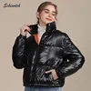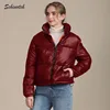 Schinotch Women Padded Jacket Thick Winter Warm Stand Collar Coat Solid Color Outwear Parka Ladies Clothes