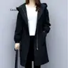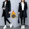 Trench Coats Women Autumn Winter Hooded Drawstring Pocket Zipper Long Outwear Plus Size Elegant Ladies Thicken Windbreaker Coats