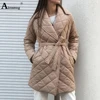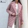 Women Fashion Cotton Coats Long Overcoats Ladies Waist Sashes Top Outerwear Vintage rhombus Outerwear 2022 Winter Warm Coats