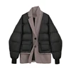 Women's jacket oversize outwear Plaid Stitching black New Lapel Long Sleeve Loose Fit Jacket Fashion Tide Autumn winter 2020