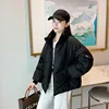 Casaco de inverno feminino, jaqueta curta e casual com zíper, jaqueta tipo bolha e gola solta bubble coat