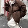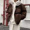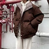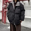 Retro Checkerboard Stand Collar Women's Parkas Winter Casual Warm Thick Black Coat Ladies Fashion Loose Long Sleeve Top Woman