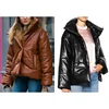 Solid PU Leather Parkas Women Fashion High Imitation Leather Coats Women Elegant Thick Cotton Jackets Female Ladies