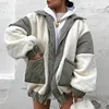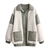 2021 Autumn And Winter New Korean Women's Women's Lapel Zipper Flying Sheep Wool Stitching Women's Cotton Jacket