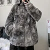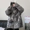 Cotton Padded Down Coat Women's 2021 Winter New Street Warm Fur Harajuku Tie Dyed Loose Thickened Jacket