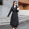 2021NEW 2021 new Woman Jacket Parkas Belted space cotton diamond plaid Coat down Women's over the Knee Winter Clothing Coat