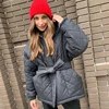 2021NEW RR Casual Solid Arygle Tie Belt Parkas Women Fashion Thick Short Coats Women Elegant Hooded Loose Cotton Jackets Female