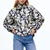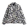 Autumn New Women's Daisy Print Single-breasted Pockets Decorative Stand-up Collar Ladies Cotton Jacket Jacket Padded Jacket