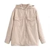2021 Autumn And Winter New Women's Long-sleeved Single-breasted Pocket Decorative Hooded Ladies Cotton Jacket