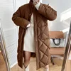 2021 Winter New Korean Style Long Cotton-padded Coat Women Casual Stand-up Collar Argyle Pattern Oversized Parka Chic Jacket