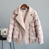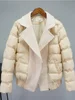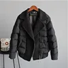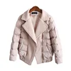 2022 Winter Coat Suit Collar Down Cotton Women's Short Padded Clothes Thick Warm Zipper Pocket Outerwear Female Woolen Stitching
